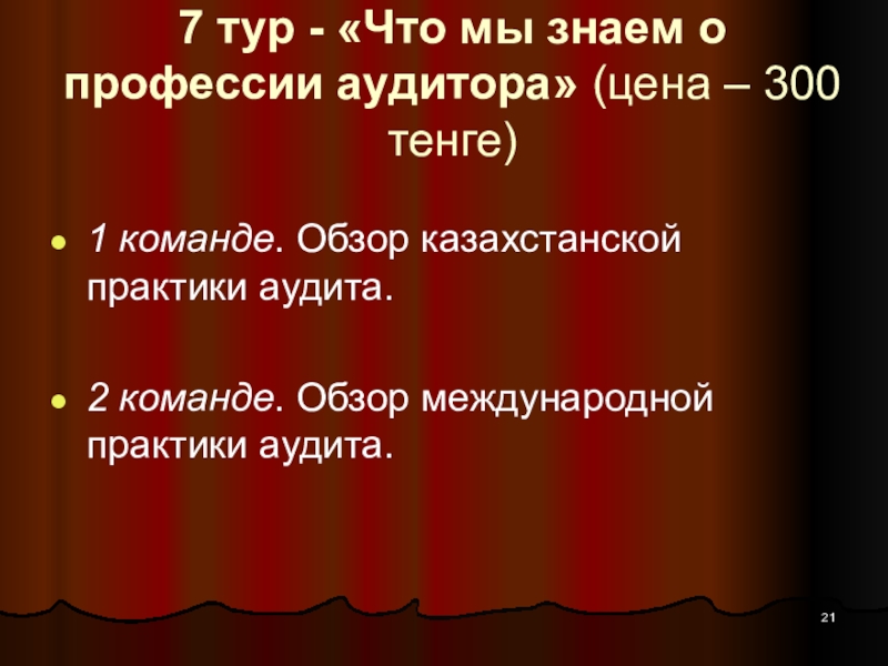 Слайд 217 тур - «Что мы знаем о профессии аудитора» (цена –