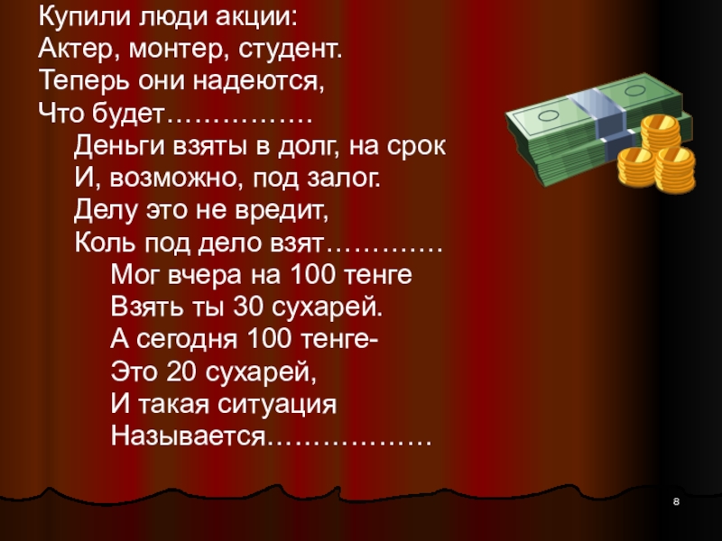 Слайд 8Купили люди акции: