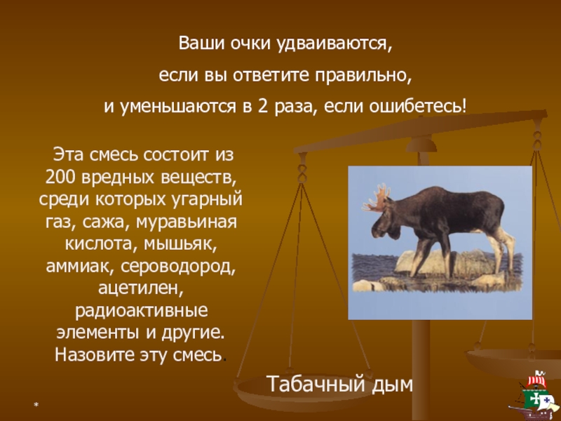Эта смесь состоит из 200 вредных веществ, среди которых угарный газ, сажа, муравьиная кислота, мышьяк, аммиак, сероводород, ацетилен, радиоактивные элементы и другие. Назовите эту смесь.