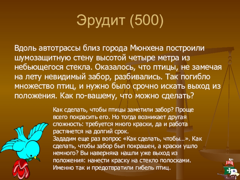 Зададим еще раз вопрос «Как сделать, чтобы…». Как сделать, чтобы забор был покрашен, а краски ушло немного? Вы наверняка нашли уже выход из положения: нанести краску на стекло полосками. Именно так и предотвратили гибель птиц.
