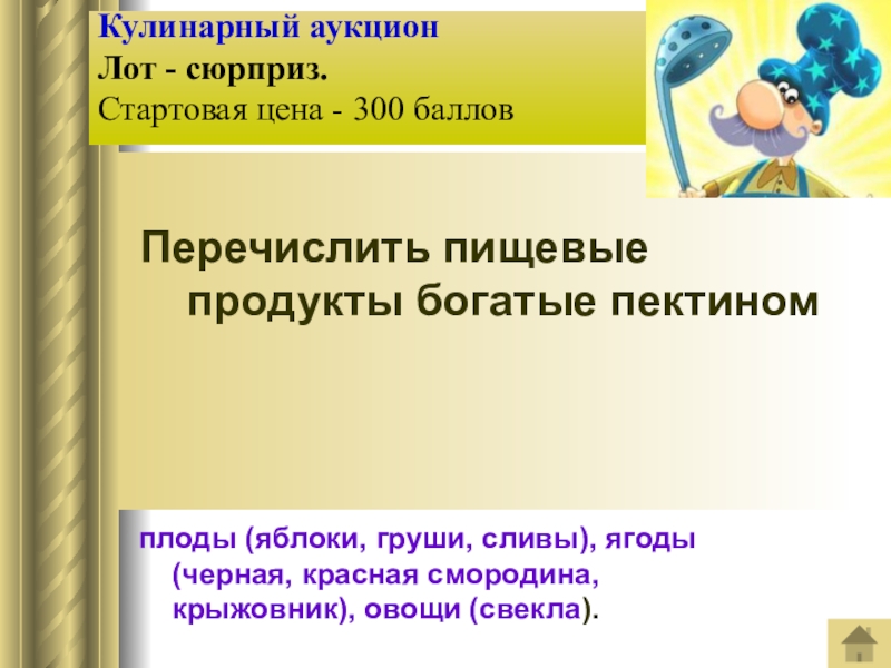 плоды (яблоки, груши, сливы), ягоды (черная, красная смородина, крыжовник), овощи (свекла).