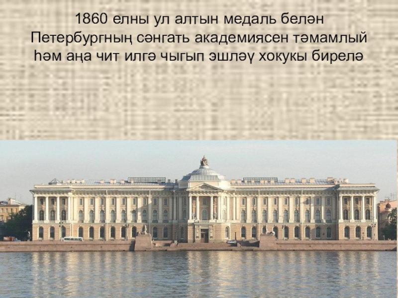 Слайд 61860 елны ул алтын медаль белән Петербургның сәнгать академиясен тәмамлый һәм