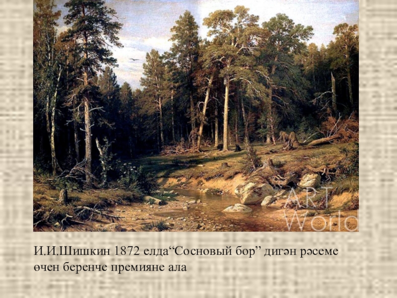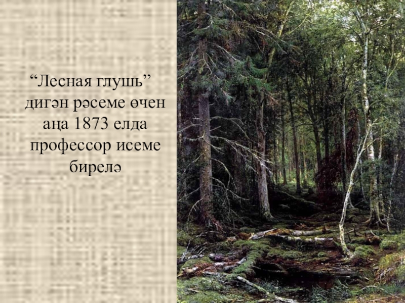 Слайд 10 “Лесная глушь” дигән рәсеме өчен аңа 1873 елда профессор исеме