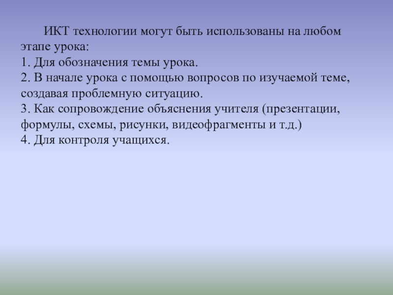3. Как сопровождение объяснения учителя (презентации, формулы, схемы, рисунки, видеофрагменты и т.д.)