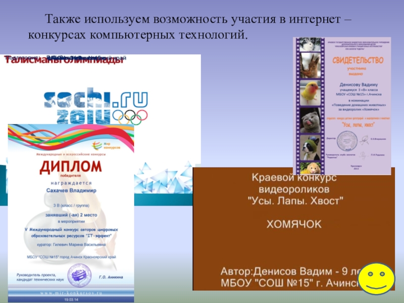 Слайд 12 Также используем возможность участия в интернет – конкурсах