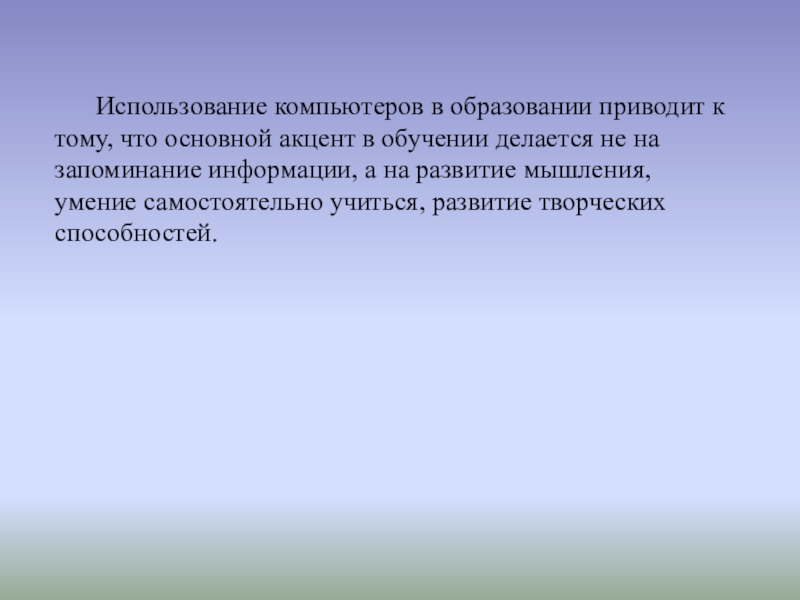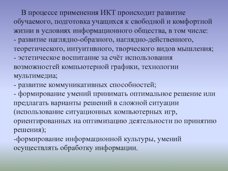 Слайд 25 В процессе применения ИКТ происходит развитие обучаемого, подготовка учащихся