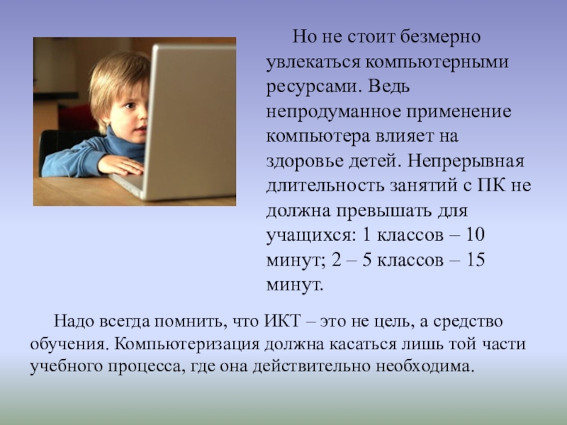 Слайд 27 Но не стоит безмерно увлекаться компьютерными ресурсами. Ведь