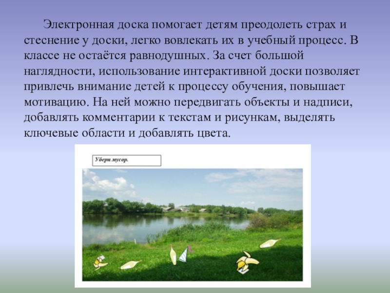 Слайд 23 Электронная доска помогает детям преодолеть страх и стеснение