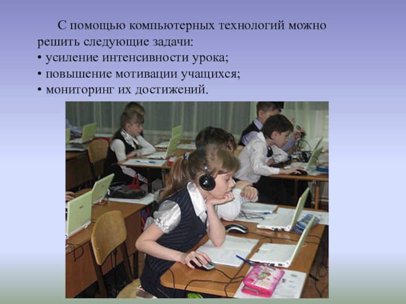 Надо всегда помнить, что ИКТ – это не цель, а средство обучения. Компьютеризация должна касаться лишь той части учебного процесса, где она действительно необходима.