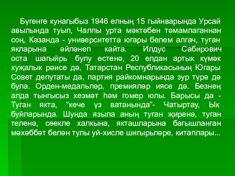 Туган телне биреп китәм.”