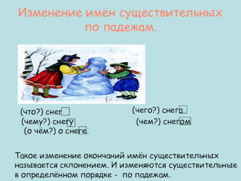 Такое изменение окончаний имён существительных называется склонением. И изменяются существительные в определённом порядке - по падежам.