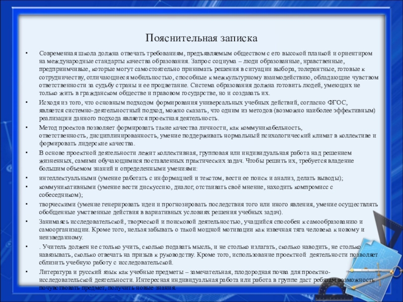 Современная школа должна отвечать требованиям, предъявляемым обществом с его высокой планкой