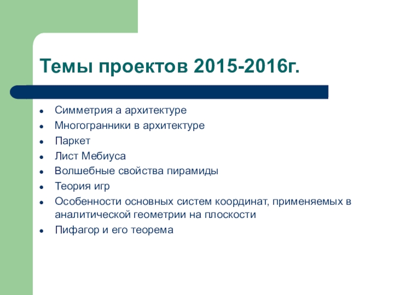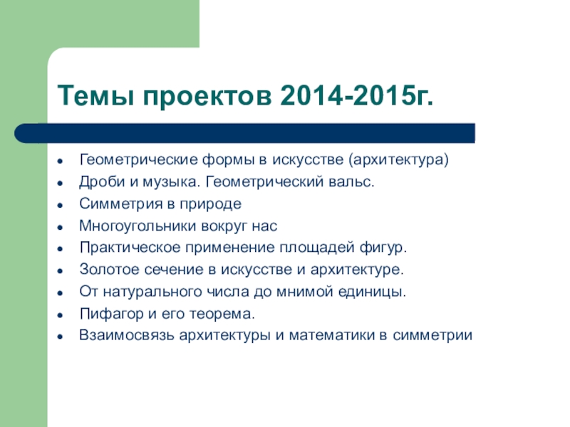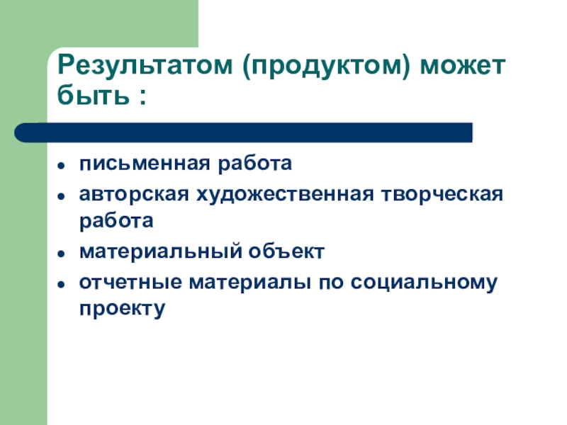 Слайд 15Перечень возможных выходов проектной деятельности: