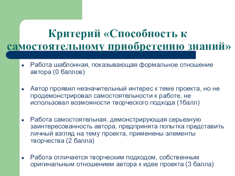 Слайд 16Критерий «Способность к самостоятельному приобретению знаний»