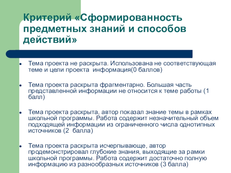 Слайд 17Критерий «Сформированность предметных знаний и способов действий»