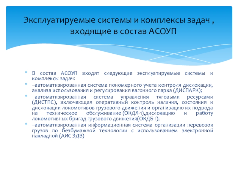 Автоматизированная система оперативного управления эксплуатационной работой ГИД «УРАЛ-ВНИИЖТ»