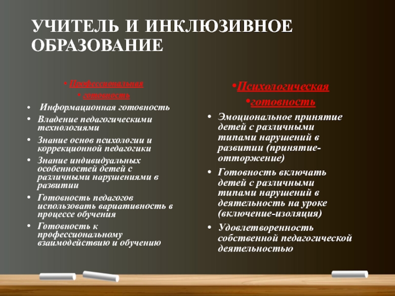 Готовность включать детей с различными типами нарушений в деятельность на уроке (включение-изоляция)