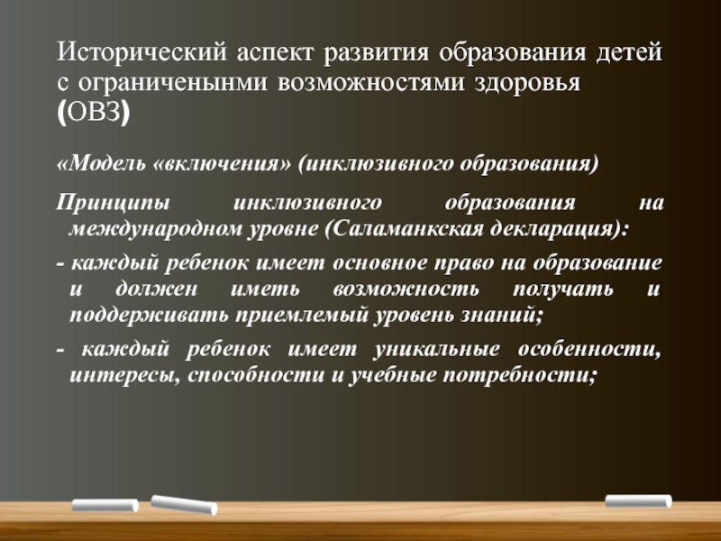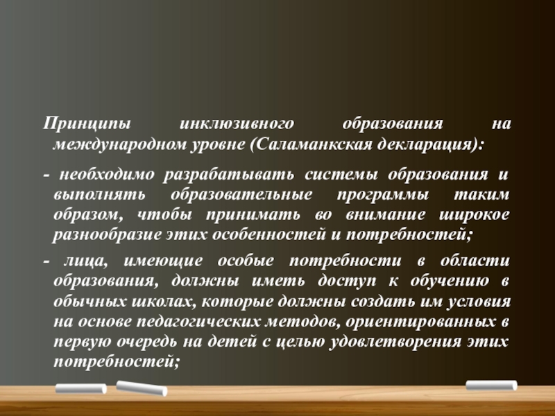 Принципы инклюзивного образования на международном уровне (Саламанкская декларация):