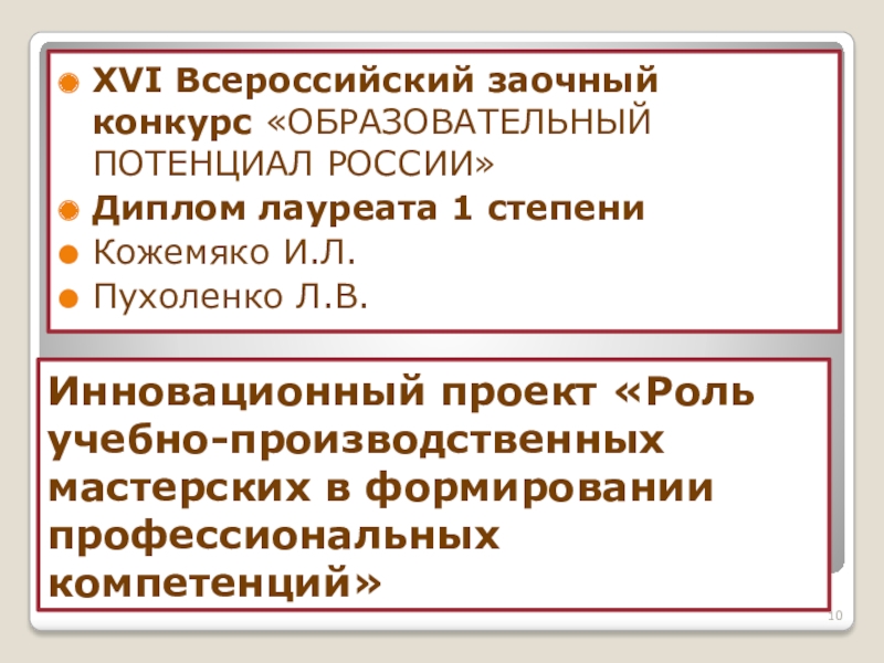 Руководители: Шестаков В.Л., Кожемяко И.Л., преподаватели ГПОУ МПТ