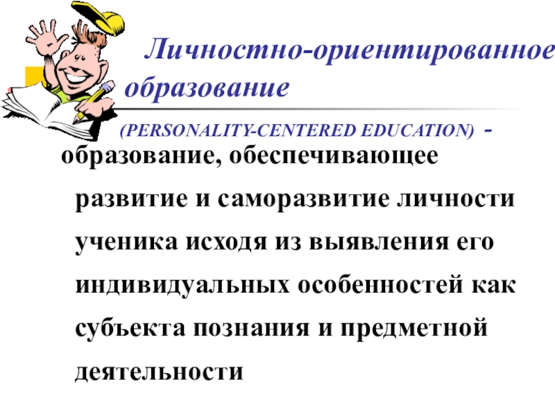 образование, обеспечивающее развитие и саморазвитие личности ученика исходя из выявления его индивидуальных особенностей как субъекта познания и предметной деятельности