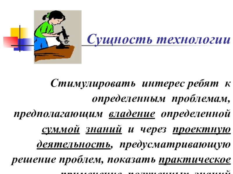 знаний и через проектную деятельность, предусматривающую решение проблем, показать практическое применение полученных знаний