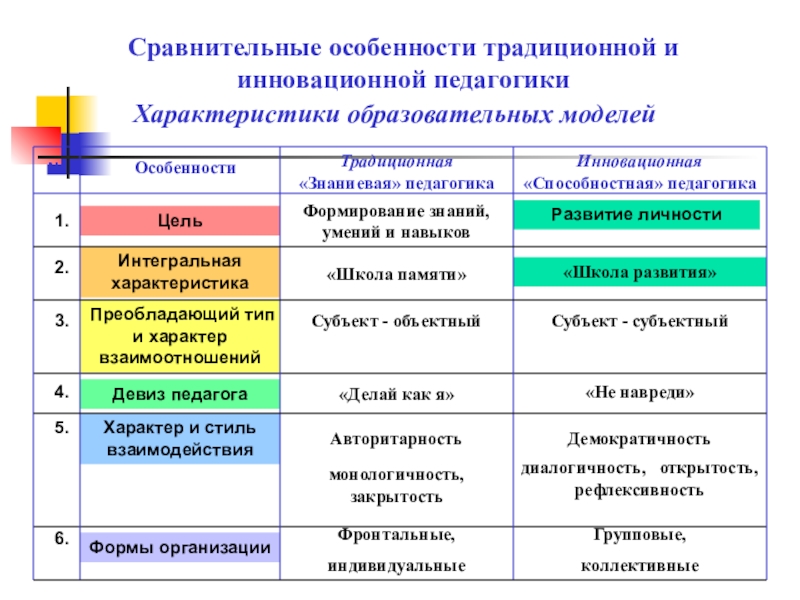 Слайд 35Сравнительные особенности традиционной и инновационной педагогики
