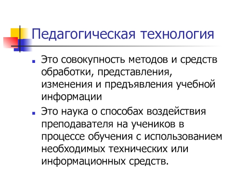 Это наука о способах воздействия преподавателя на учеников в процессе обучения с использованием необходимых технических или информационных средств.