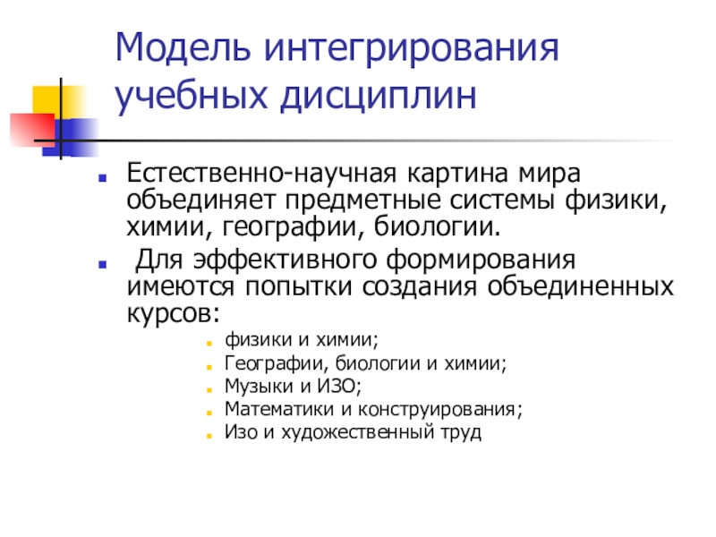 Для эффективного формирования имеются попытки создания объединенных курсов: