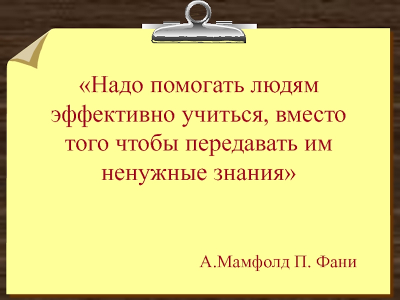 Слайд 7«Надо помогать людям эффективно учиться, вместо того чтобы передавать им ненужные