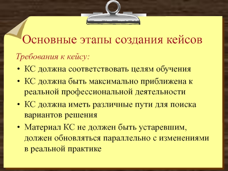 Материал КС не должен быть устаревшим, должен обновляться параллельно с изменениями в реальной практике