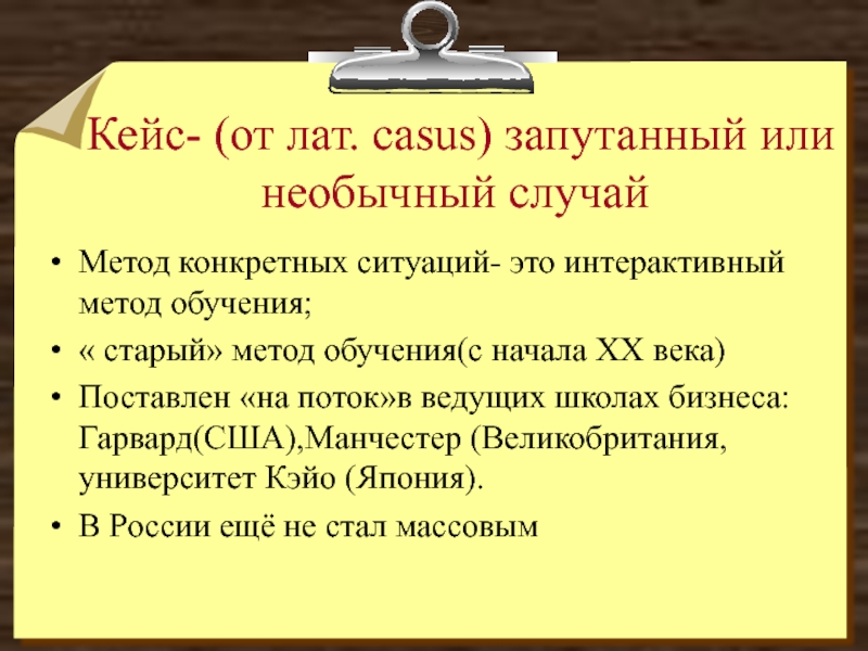 Слайд 2Кейс- (от лат. casus) запутанный или необычный случай