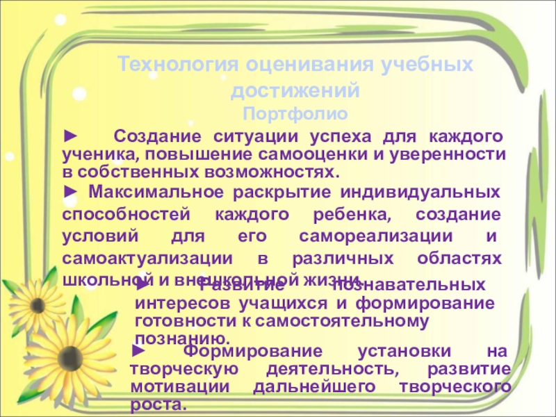► Формирование установки на творческую деятельность, развитие мотивации дальнейшего творческого роста.