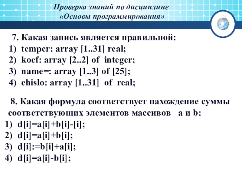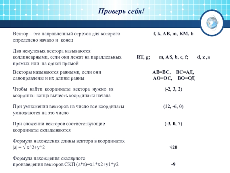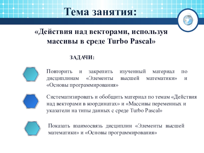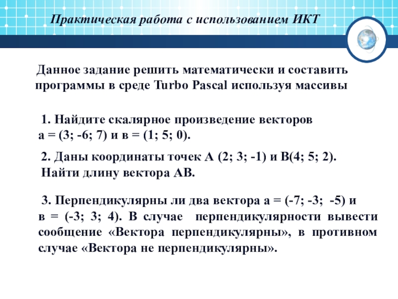 Систематизировать и обобщить материал по темам «Действия над векторами в координатах» и «Массивы переменных и указатели на типы данных с среде Turbo Pascal»