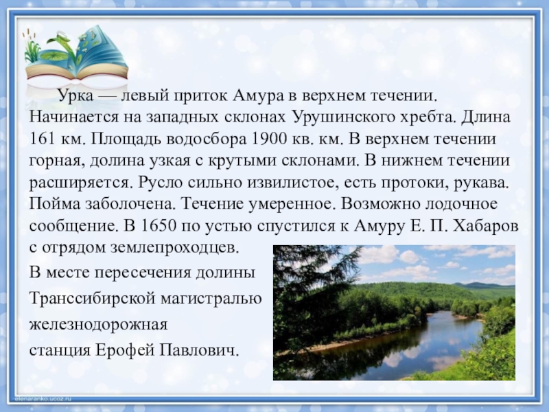 Слайд 6 Урка — левый приток Амура в верхнем течении. Начинается на западных