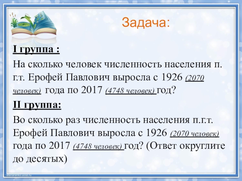 Ответ: на 2578 человек выросла численность населения.