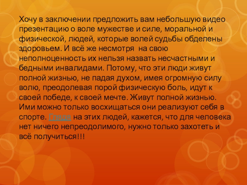 Это сайт презентаций, где можно хранить и обмениваться своими презентациями, докладами, проектами, шаблонами в формате PowerPoint с другими пользователями. Мы помогаем школьникам, студентам, учителям, преподавателям хранить и обмениваться учебными материалами.