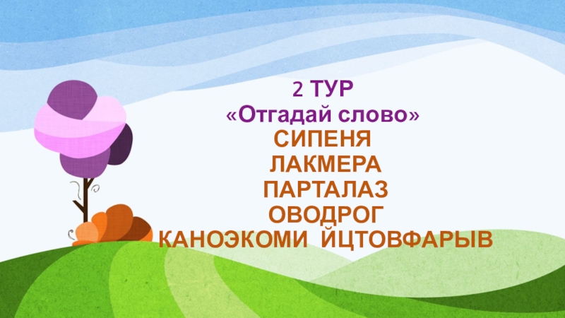 Слайд 42 ТУР «Отгадай слово» СИПЕНЯ ЛАКМЕРА ПАРТАЛАЗ ОВОДРОГ КАНОЭКОМИ