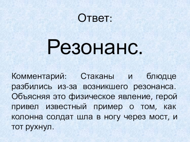 явление, герой привел известный пример о том, как колонна солдат шла в ногу через мост, и тот рухнул.