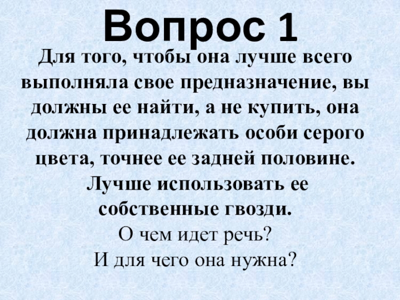 должны ее найти, а не купить, она должна принадлежать особи серого цвета, точнее ее задней половине.