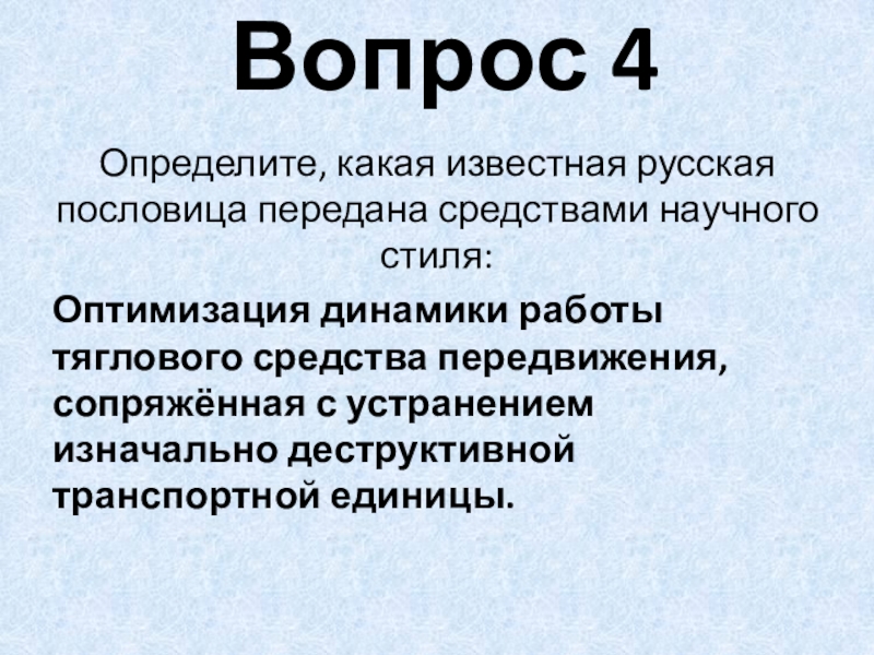 Определите, какая известная русская пословица передана средствами научного стиля: