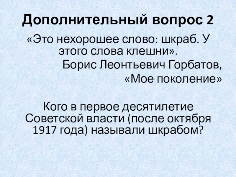 Кого в первое десятилетие Советской власти (после октября 1917 года) называли шкрабом?