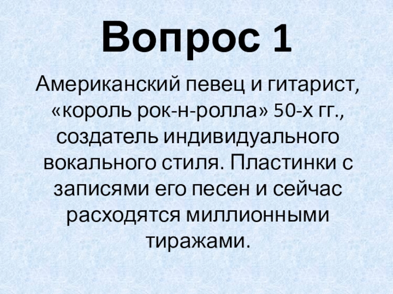 Американский певец и гитарист, «король рок-н-ролла» 50-х гг., создатель индивидуального