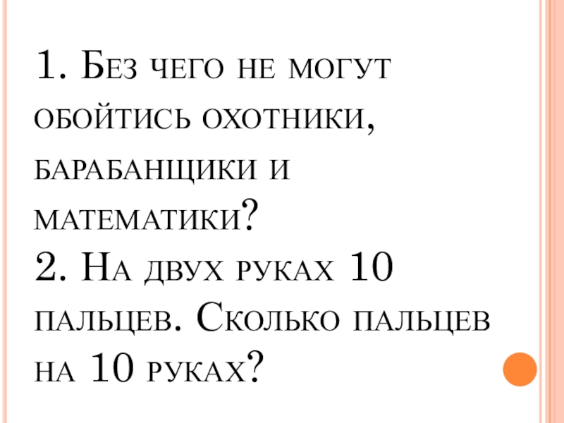 Слайд 411. Без чего не могут обойтись охотники, барабанщики и математики?