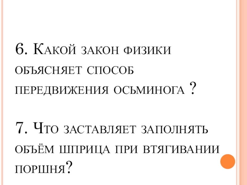Слайд 336. Какой закон физики объясняет способ передвижения осьминога ?