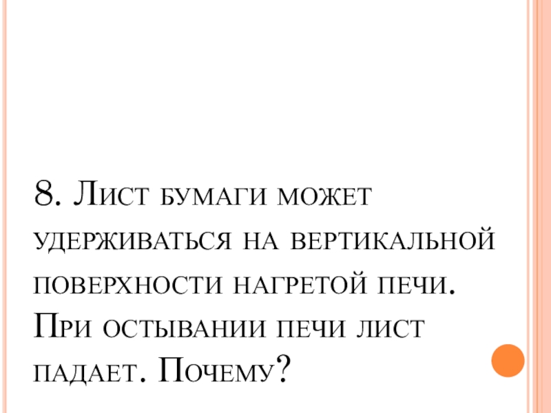 Слайд 348. Лист бумаги может удерживаться на вертикальной поверхности нагретой печи. При