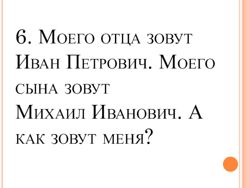 Слайд 86. Моего отца зовут Иван Петрович. Моего сына зовут