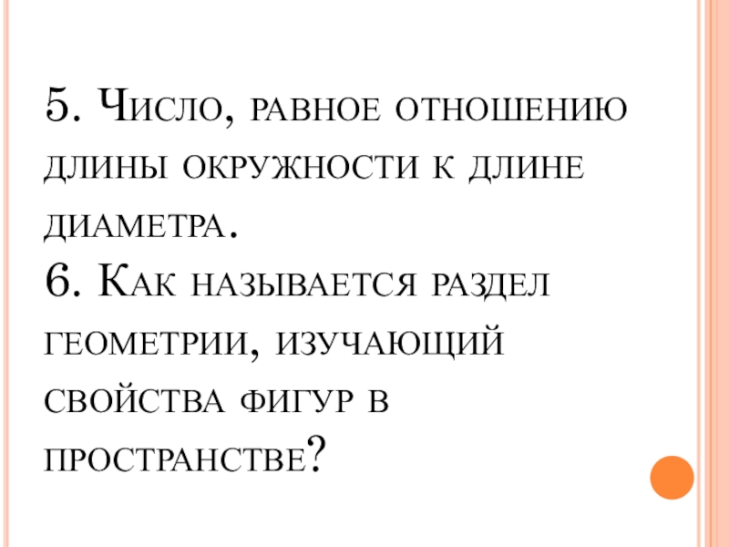 Слайд 145. Число, равное отношению длины окружности к длине диаметра.