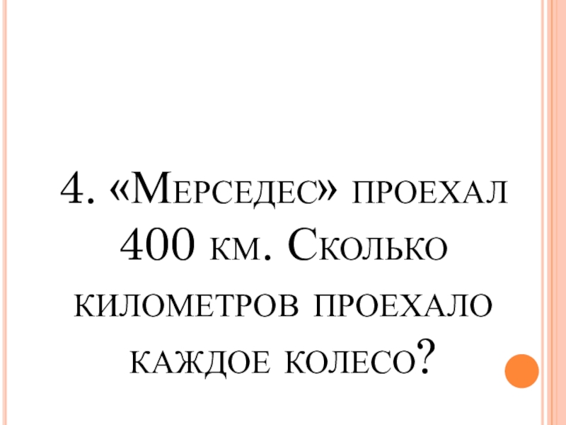 Слайд 64. «Мерседес» проехал 400 км. Сколько километров проехало каждое колесо?