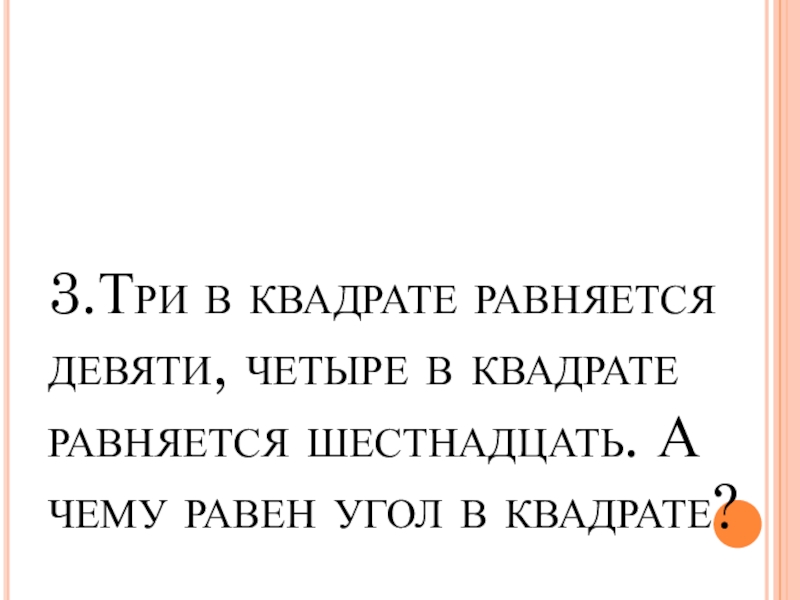 Слайд 423.Три в квадрате равняется девяти, четыре в квадрате равняется шестнадцать. А