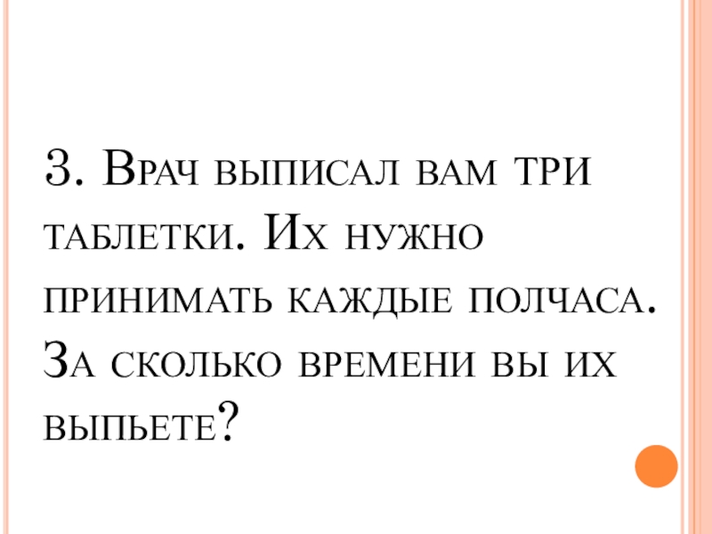Слайд 53. Врач выписал вам три таблетки. Их нужно принимать каждые полчаса.